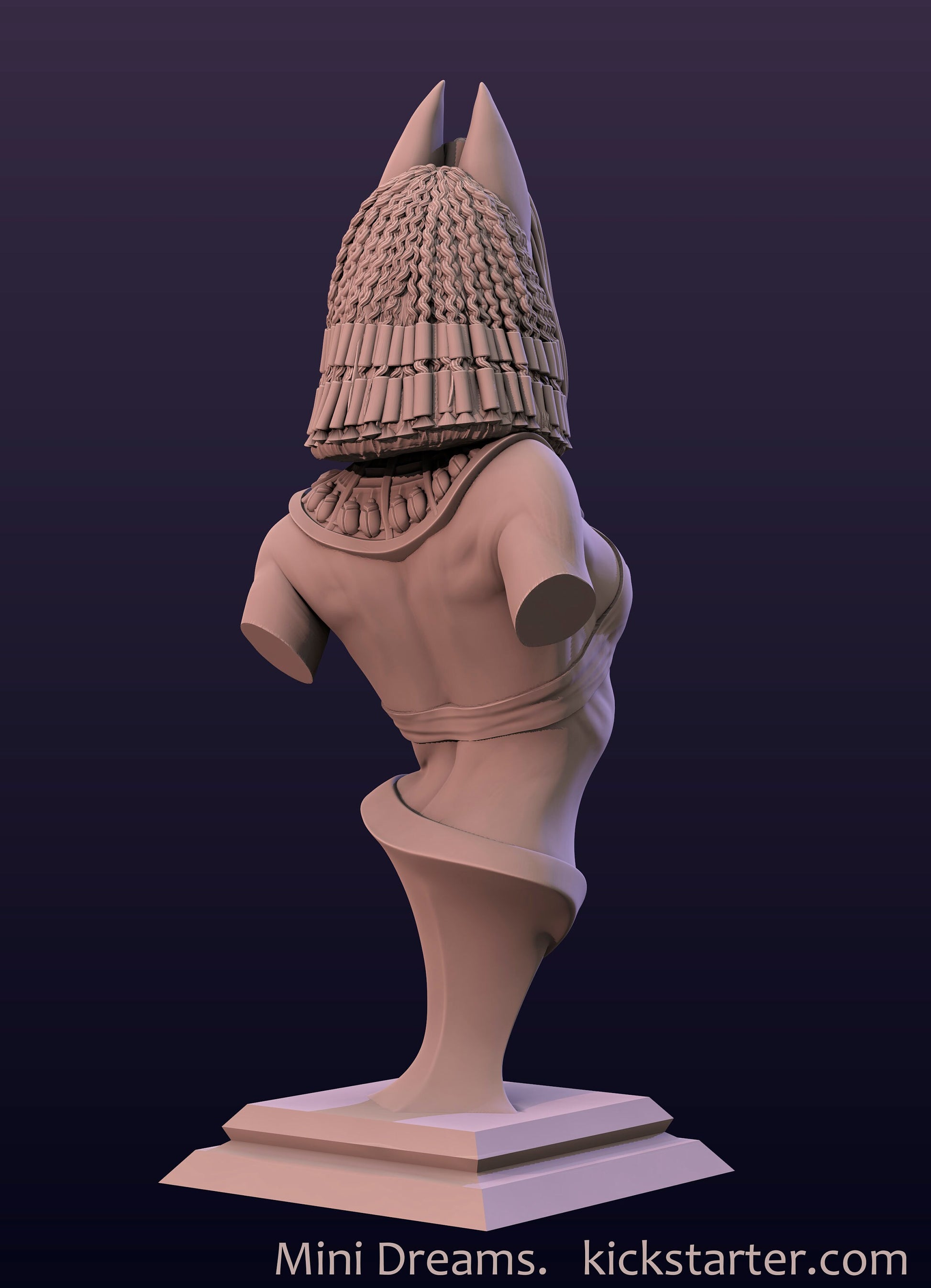 This beautiful bust sculpted by Mini Dreams depicts the regal pharaoh, Ankhusu. Resplendant and an eager ruler of her people, she has been elevated to an almost godly position due to her heritage as a daughter of the god, Bastet.