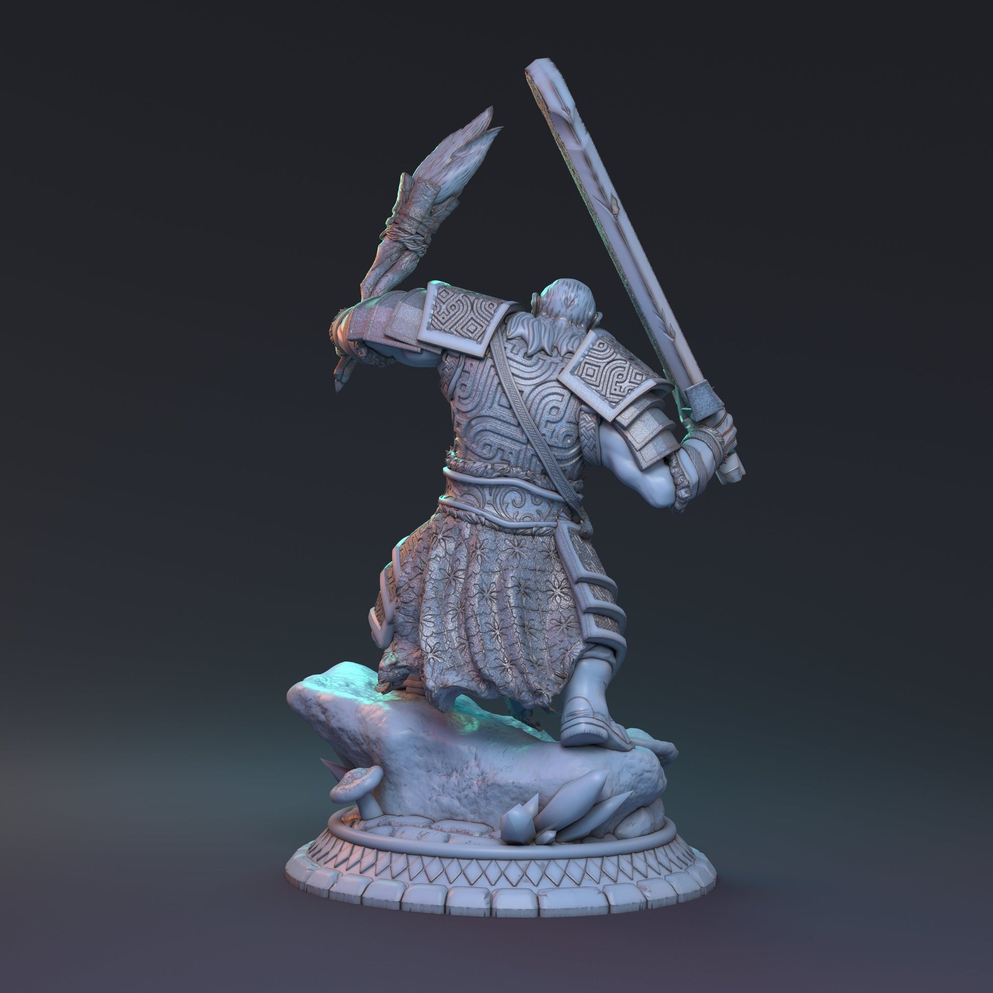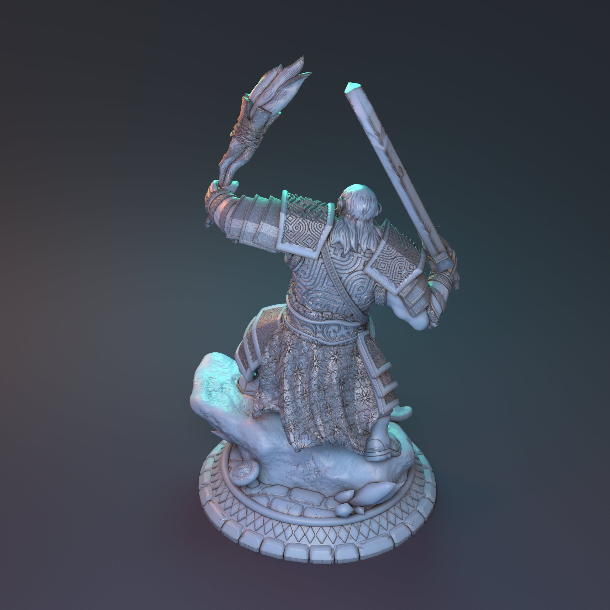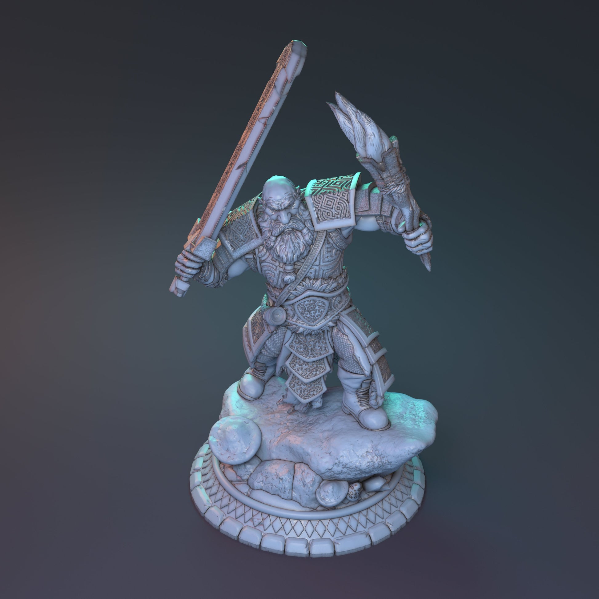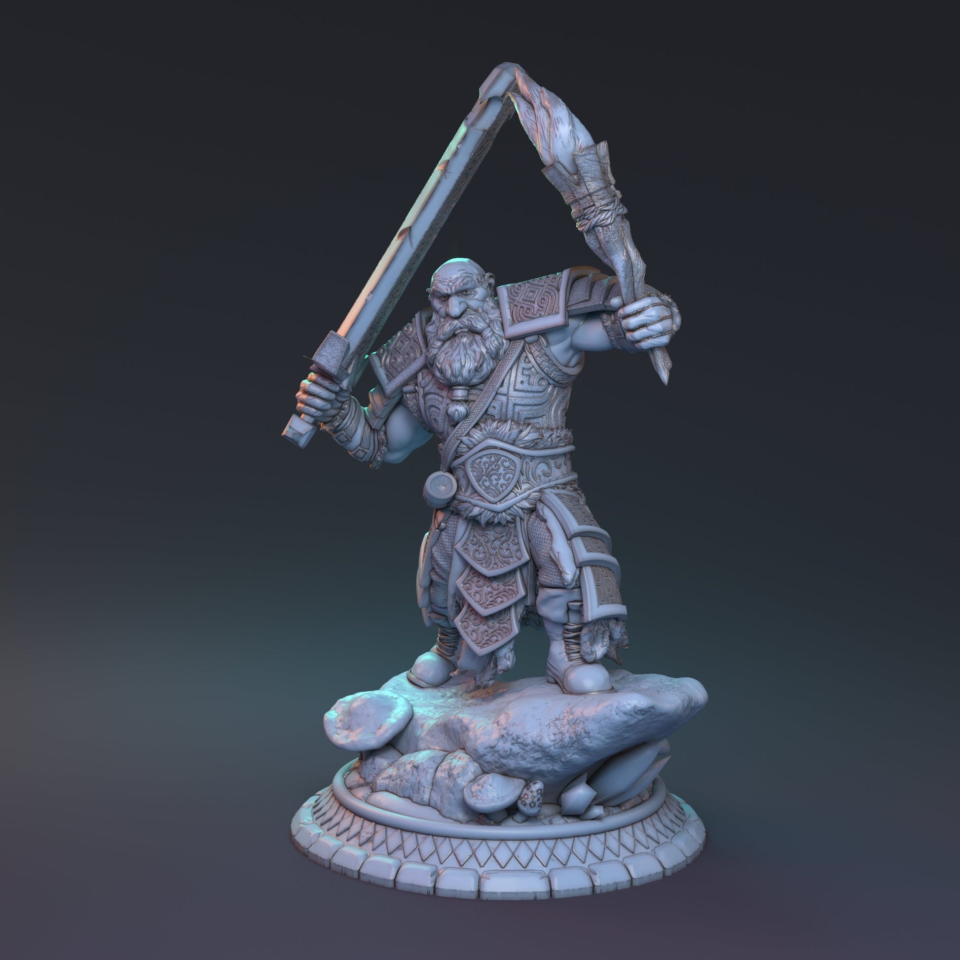 "The buried realm of Faycez-Morne, forgotten for ages has only just been discovered. And like that, news of this ancient kingdom of wealth circulated throughout the world attracting the intrepid and foolish. Boldar perhaps is one such fool. Hailing from the Dwarven kingdoms, Boldar scours ancient Faycez-Morne in search of technology and challenge, seeking to bring home whatever advancements that brought this deceased kingdom it's wealth."