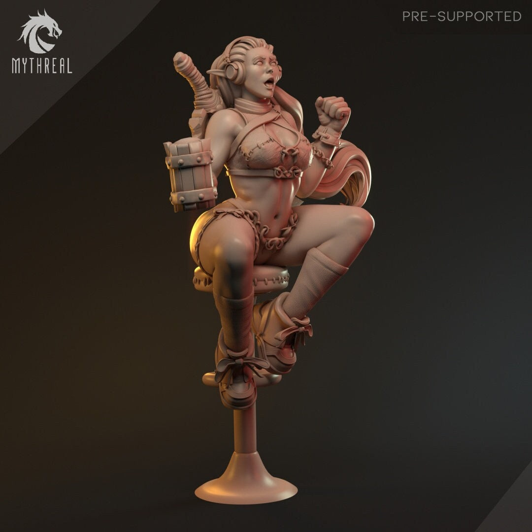 "In the taverns you'll find her, Olfia. Atop her head a mystical artifact she calls headphones, they let out a noise only she can hear and to it she responds so eagerly in hope of some nebulous voices victory."