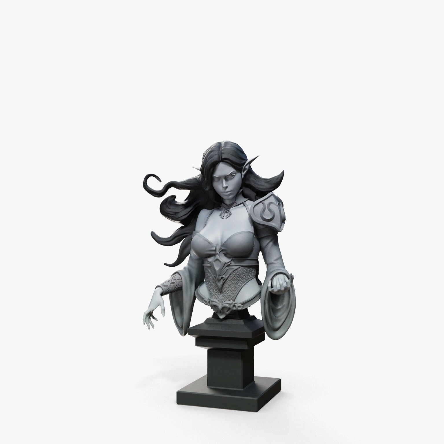 This model was sculpted by Female Miniatures and is sold with their licensed permission through their 'Nightshade Sisters' kickstarter campaign.
