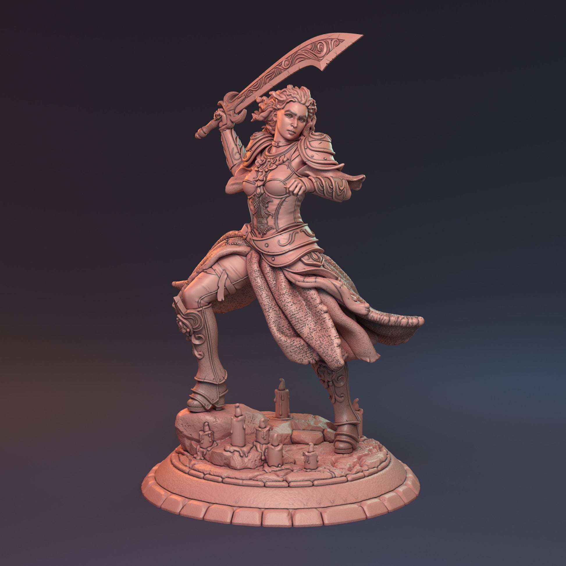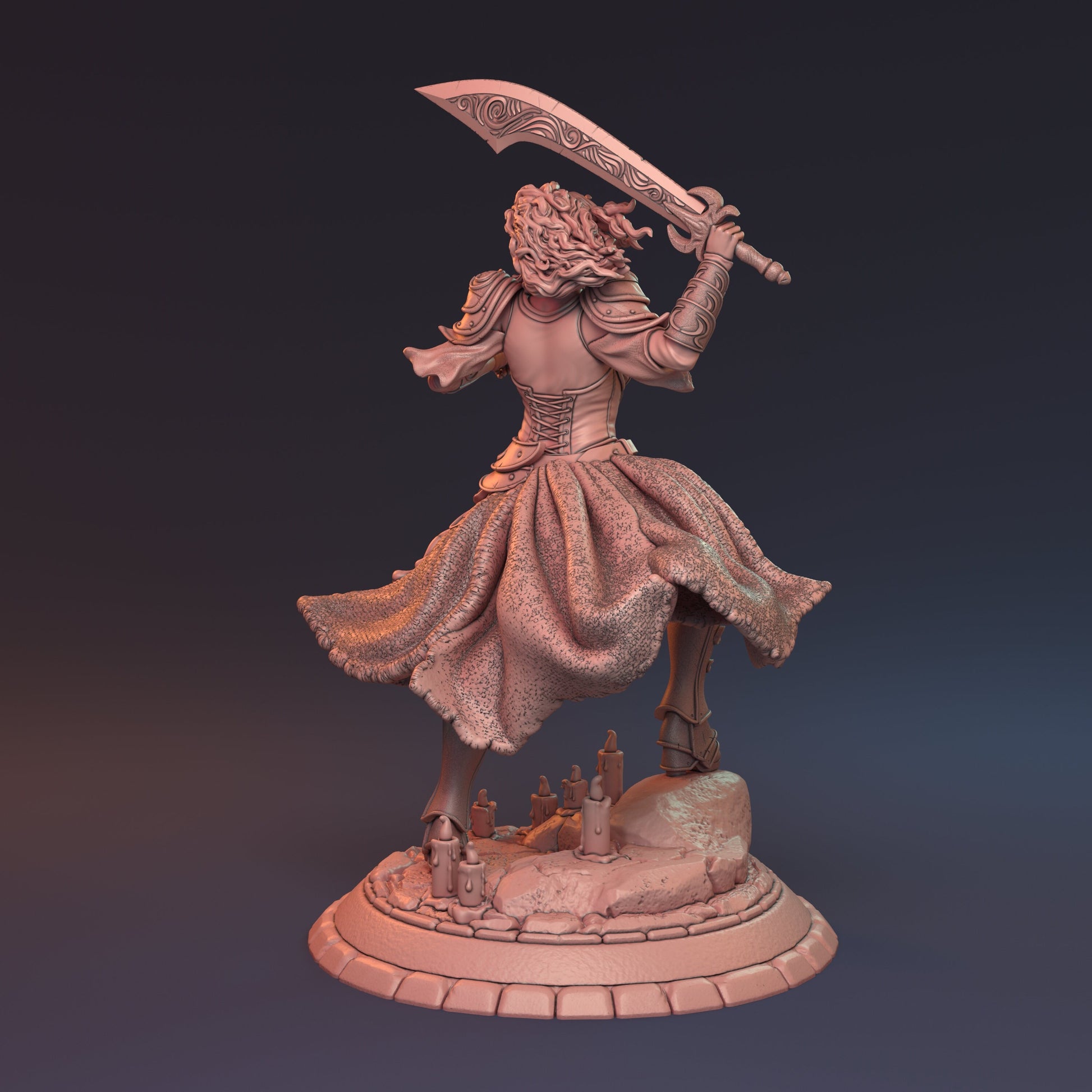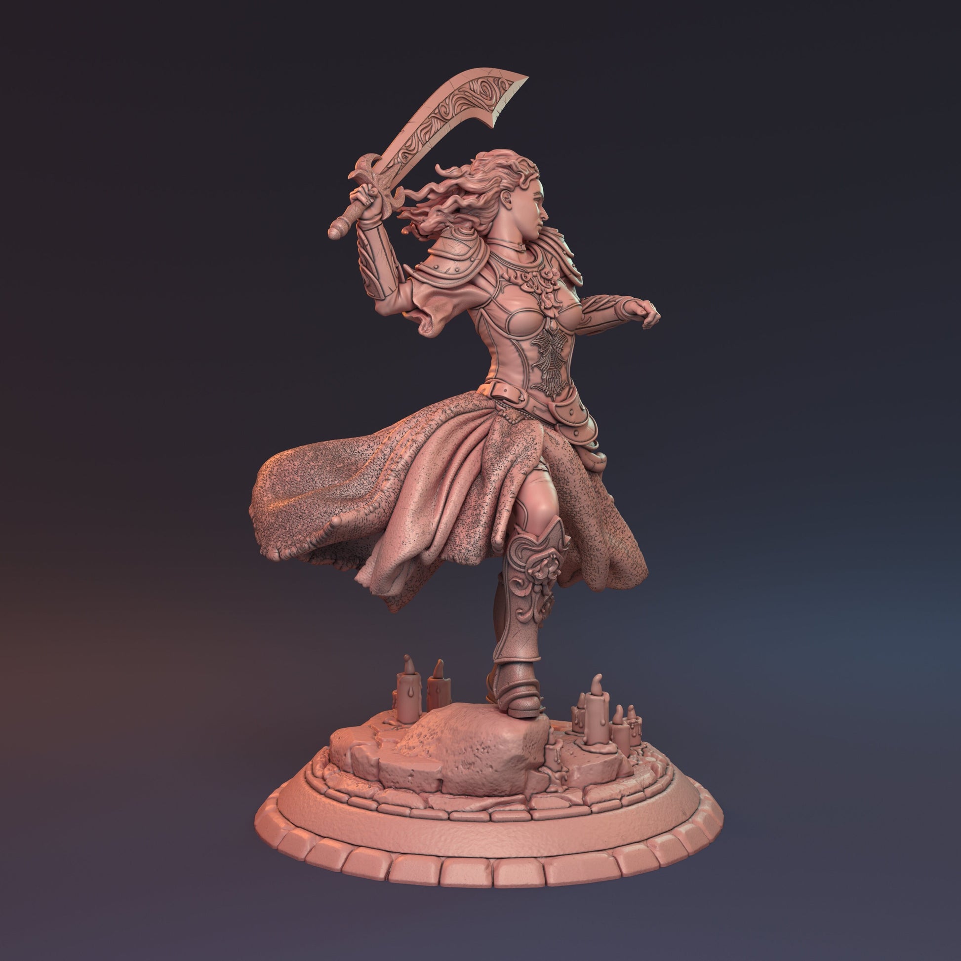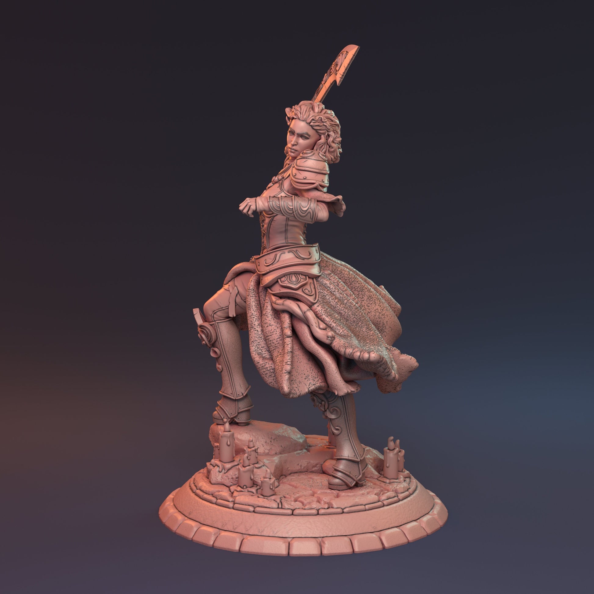 "Laerta is a spirited and intrepid explorer. Known across the realm for her daring adventures across uncharted lands and dungeons. With her relentless courage, Laerta descended into the depths of Vorents missing dungeon. Wielding with her a gilded scimitar earned from an ancient desert kingdoms buried temple."