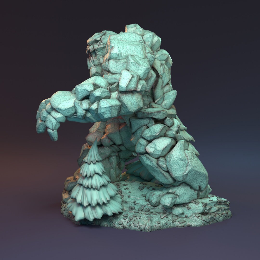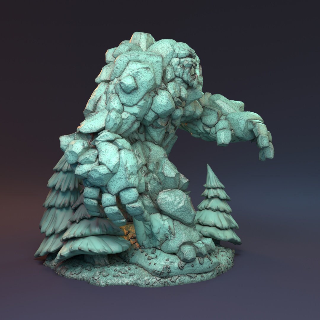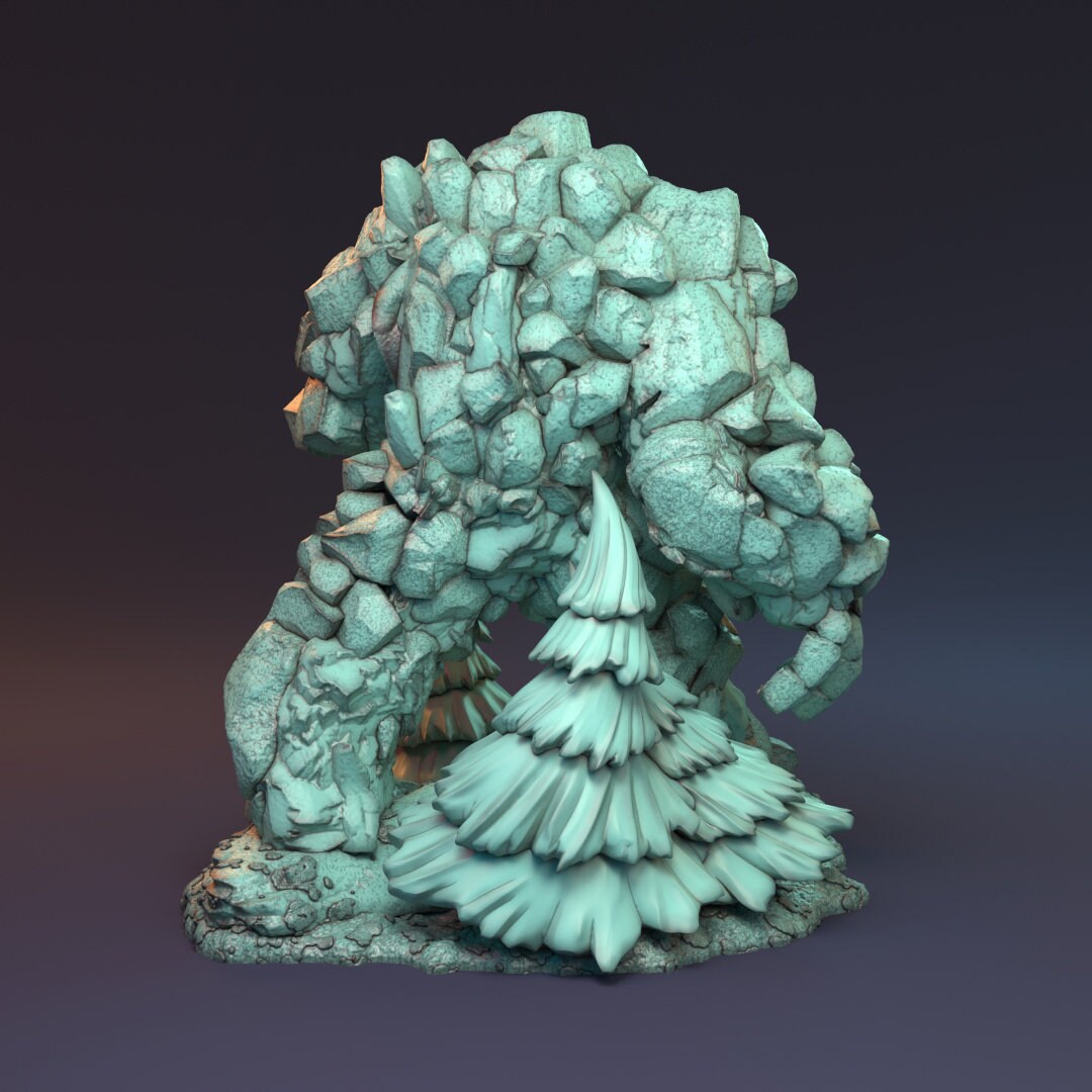 "You feel it first. The earth shuddering, vibrating beneath your feet. Then you hear it, thumping thunder, approaching, growing louder each time. The birds take flight from the forest and that's when you see it, the titanic Makaton. The Anumaan forests deity and greatest defender. A hulking mass of stone, this golem like creature towers over even the highest tree's and every stride rips them from the ground and shatters more to pieces."