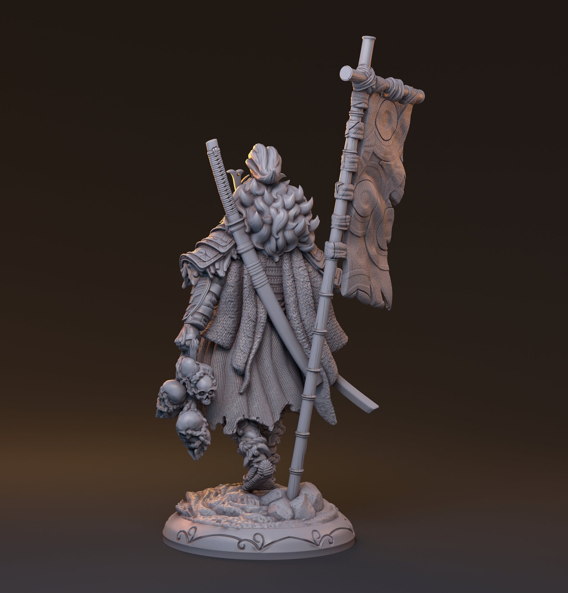 "Many have seen Kenkyo's unassuming form and thought the Kogarashi clan weak for following her. That would be wrong. For those who dared underestimate the clan and sought its downfall when their demands were refuted would meet with the loyal samurai, Masoeshi. He walks solitarily across the field, stalking towards the camp of the clans enemy, his form the visage of a raging Asura. Those who do not flee will have their skulls offered to the clan as assurance of their enemies demise."