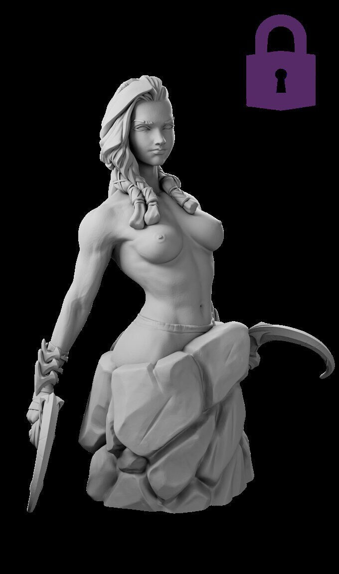 This model was sculpted by Miniatures Cave and is sold with their licensed permission through their 'Serphina: The Half-Elf Assassin' Kickstarter Campaign.