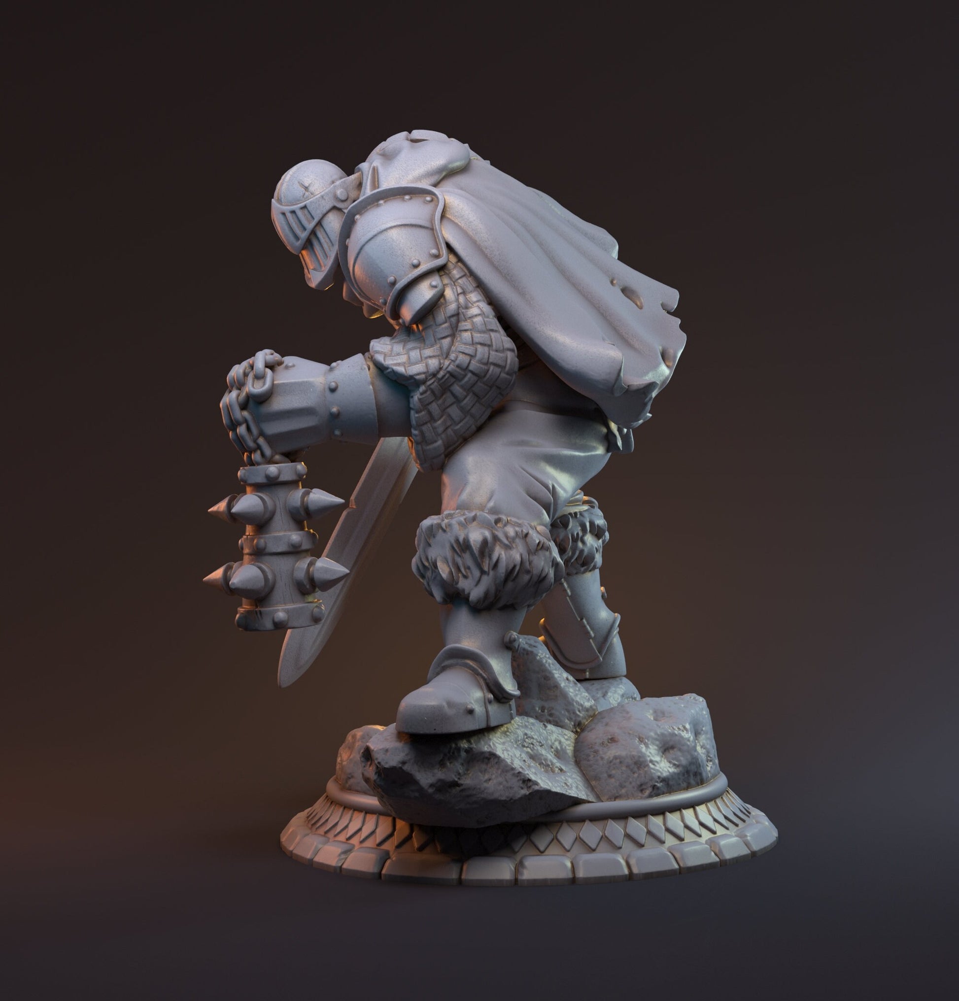 "With blade in one hand a chained flail in another, Sir Robert charges into a battle as an elite member of King Uther's army. Single handedly he can challenge a platoon, though his pride dictates that he challenge them one by one."