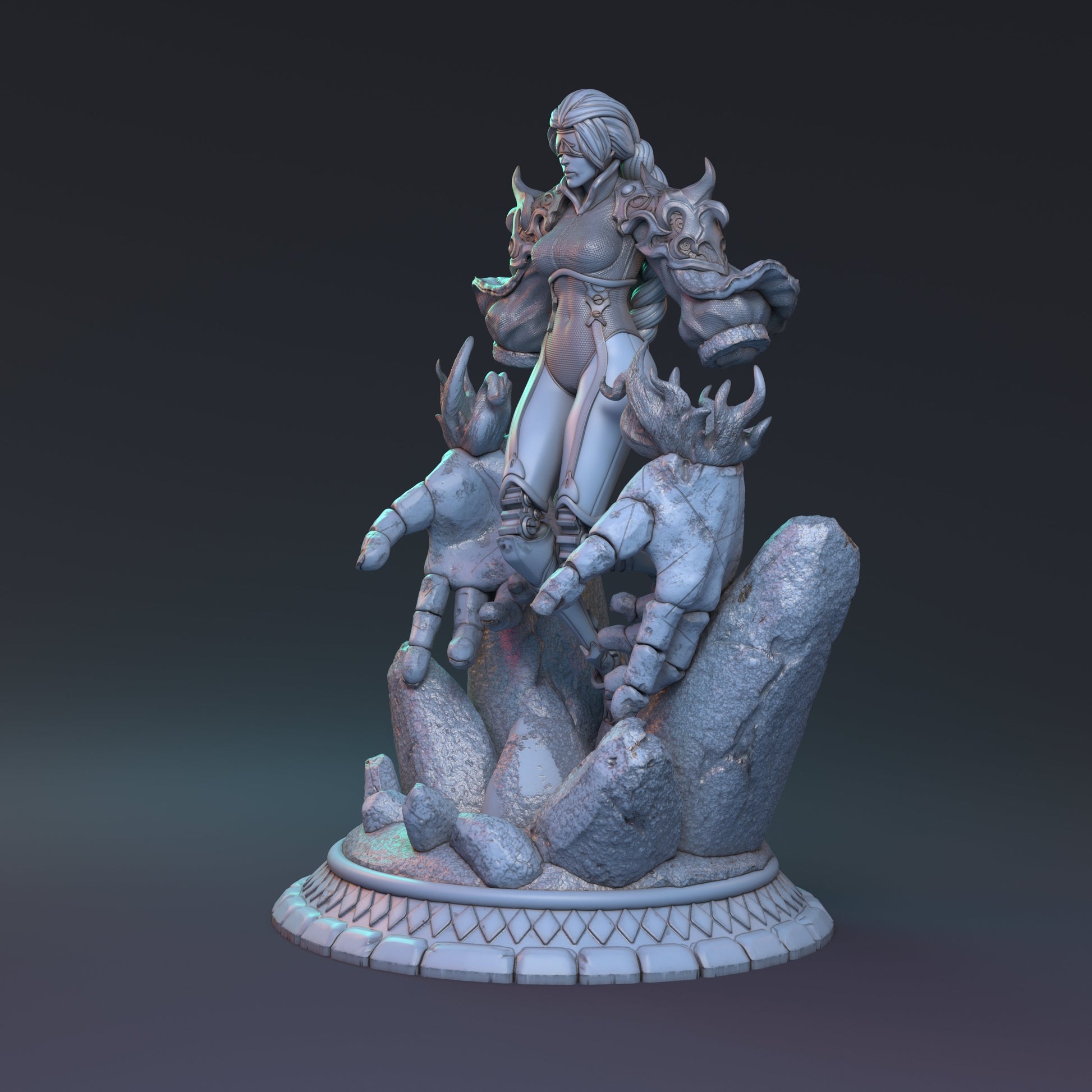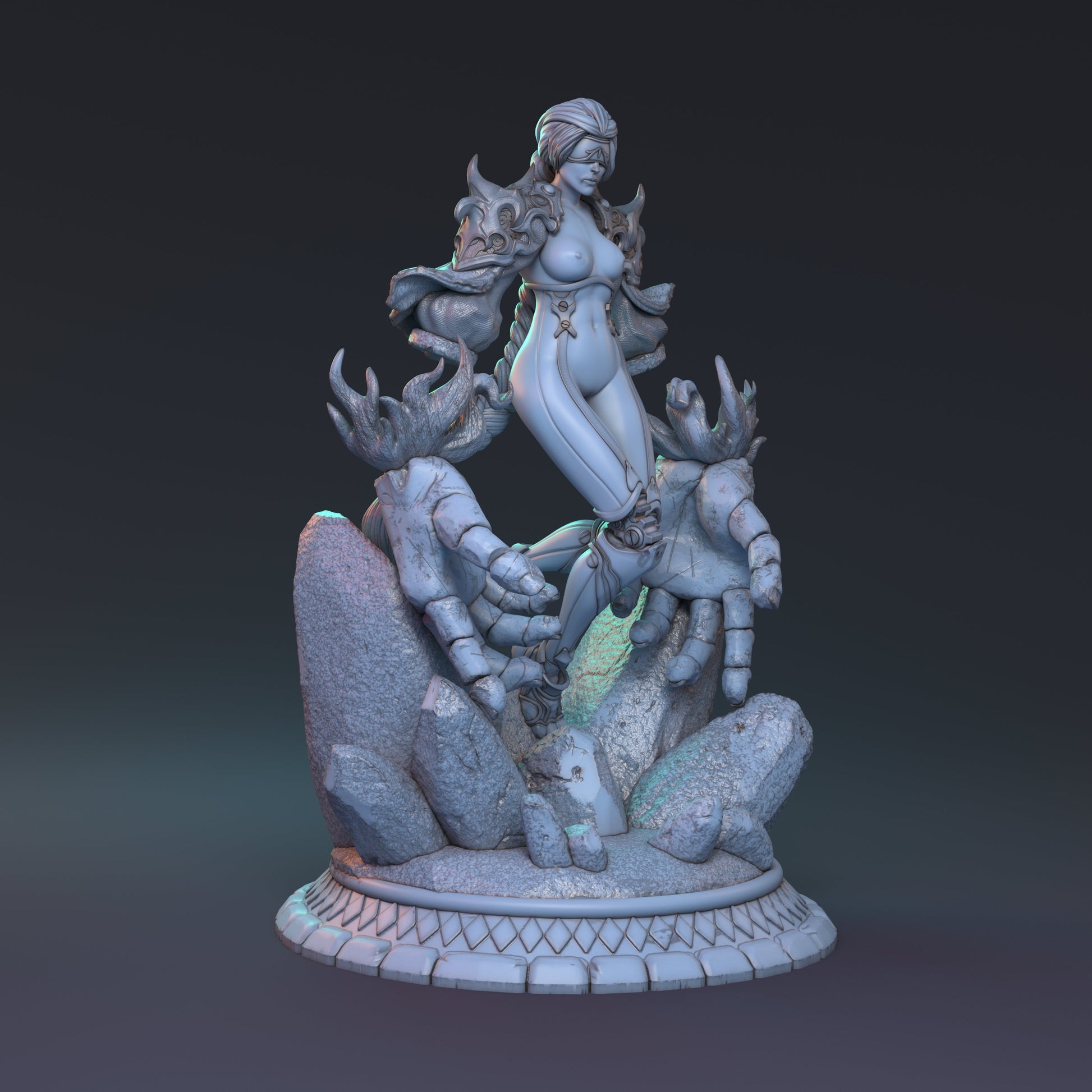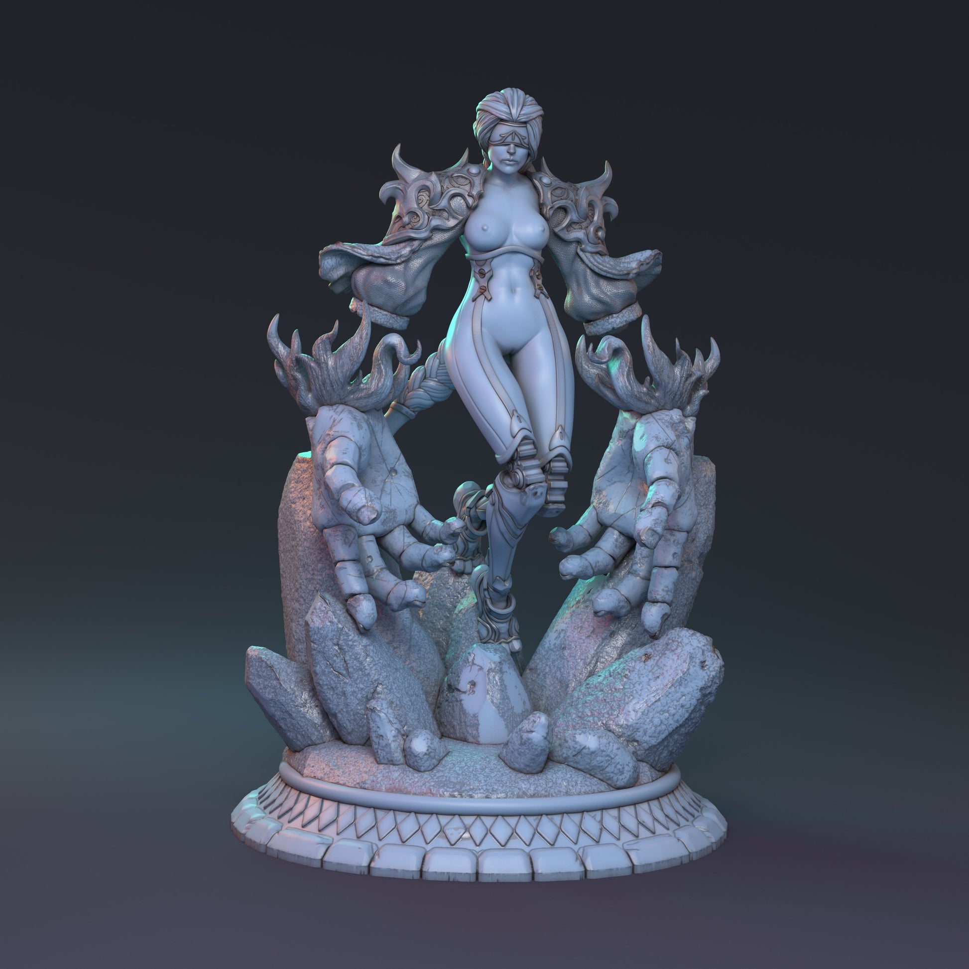 "Rarely, Agveldis Mantum will offer leniency to those particularly beautiful women she scorns in her demonhood. 'Pluck out thy eyes, and gaze never more upon beauty.' Xandrielle was one such 'lucky' women. She had fought the she-demon and in the process lost both arms. When Agveldis Mantum lifted her to the maw of her chest which whispered and offered her a tooth to do the deed, she did so."